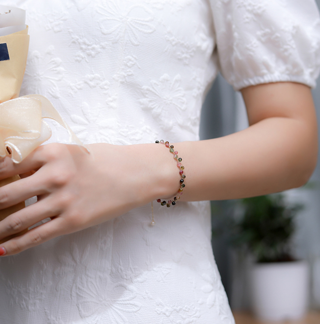 - A Spectrum of Genuine Tourmaline: Features a vibrant array of genuine, faceted tourmaline beads. Each tiny gemstone is hand-selected for its unique color, from soft pinks and greens to deep blacks, creating a one-of-a-kind rainbow for your wrist.