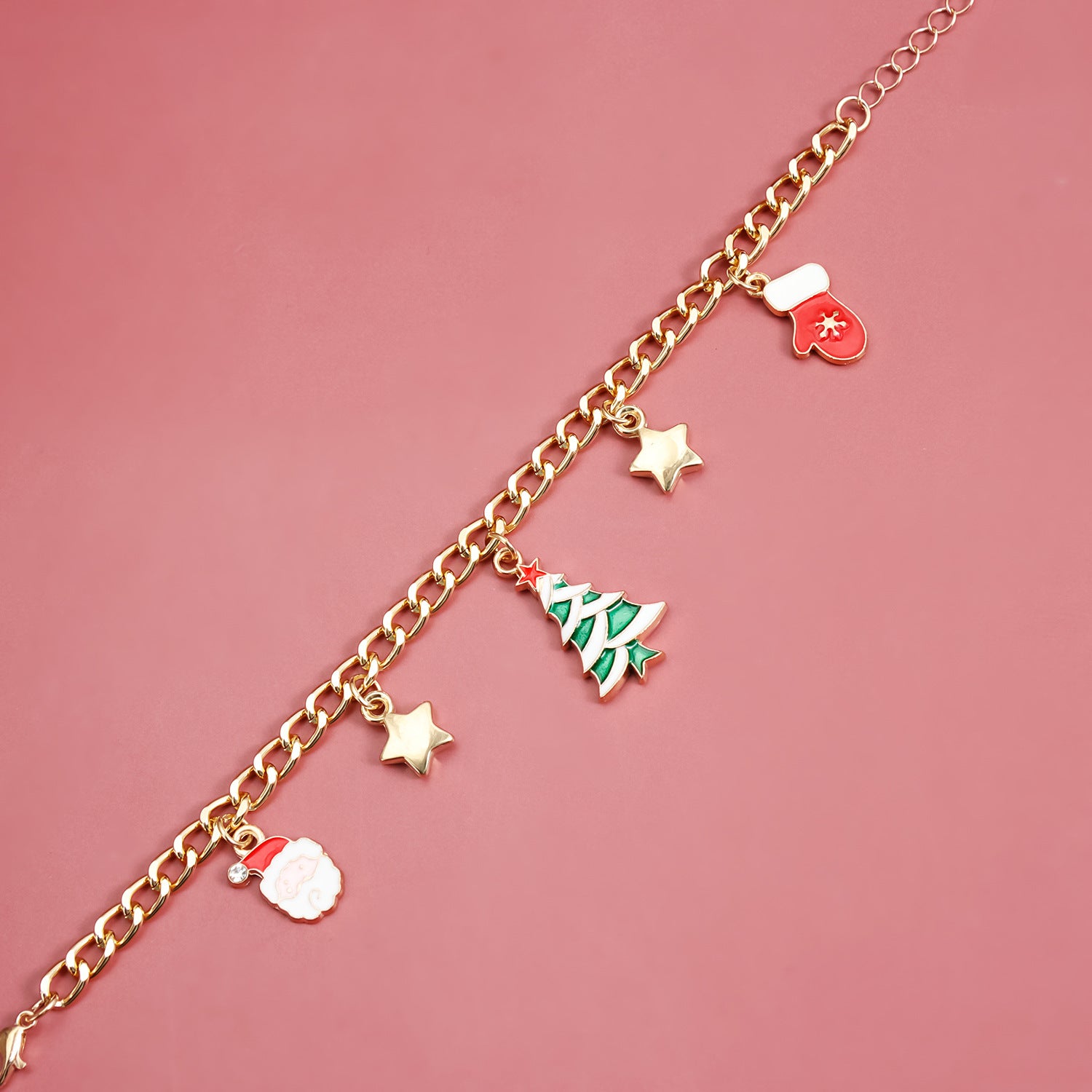 - 1 x The Holiday Charm Bracelet: A classic gold-tone chain bracelet, jingling with cheerful enamel charms! Featuring Santa Claus, a decorated Christmas Tree, a cozy Mitten, and shining stars. It's the perfect piece to celebrate the season.